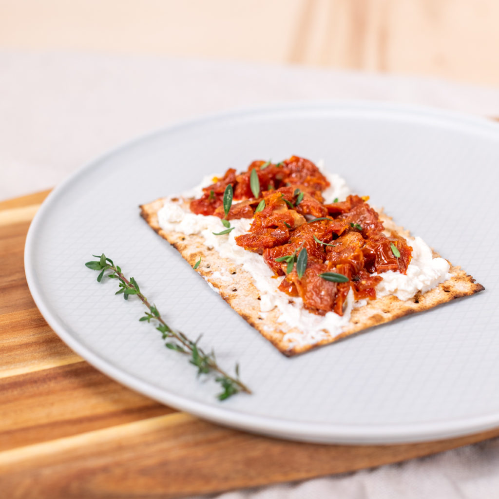 - Tartinez généreusement la ricotta sur une tartine de pain azyme.